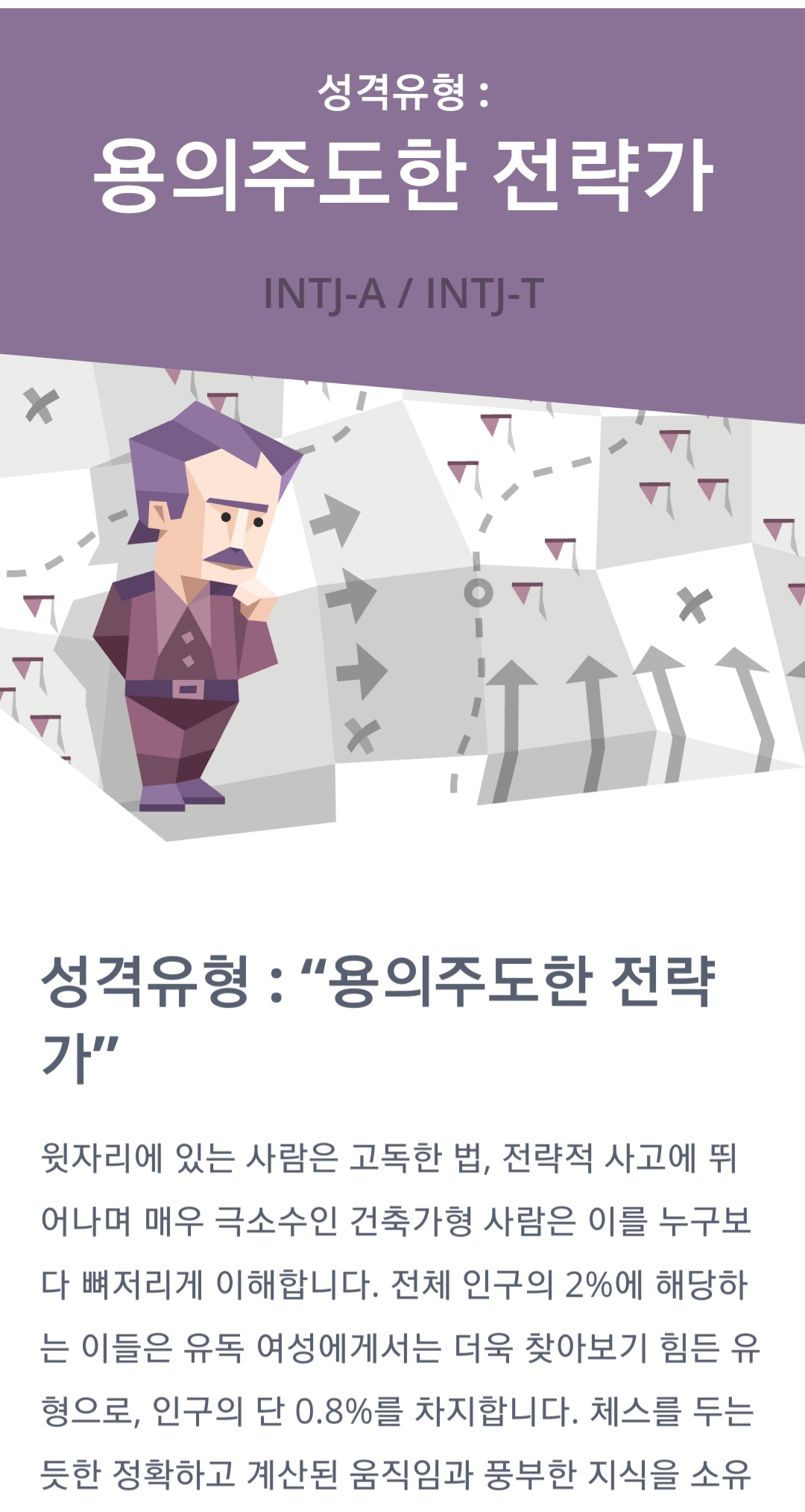 결과가 INTJ로 나온 사람들 중에서는 실제로 ISTJ인 경우도 많다. 여러 번 신중하게 테스트를 해보도록 한다.